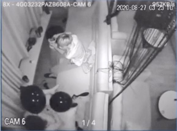 Theo dõi hình ảnh trong đoạn clip do camera an ninh bên trong quán cho thấy, khoảng 3h sáng ngày 27/8, một cô gái vẫn ở trong phòng hút bóng cười. Đặc biệt, bên cạnh có một thanh niên được cho là nam nhân viên của quán, ngồi bên bình bóng cười liên tục bơm bóng để phục vụ vị "thượng đế" này. Xung quanh, vỏ bóng cười vứt la liệt khắp nơi.