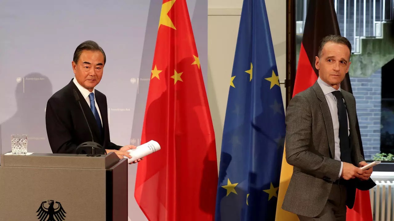 Ngoại trưởng Trung Quốc Vương Nghị (T) và đồng nhiệm Đức Heiko Maas sau cuộc họp báo tại Berlin (Đức) ngày 01/09/2020. REUTERS - POOL