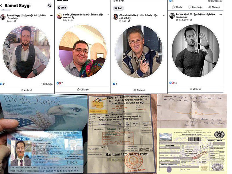 • Làm quen, tán tỉnh, hứa kết hôn, gửi quà, ngoại tệ và dẫn dắt nạn nhân trả phí dịch vụ, phí hải quan, tiền phạt...