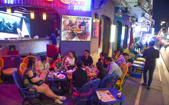 Bạn trẻ vui chơi ở một quán bar tại phố đi bộ Bùi Viện, quận 1, TP.HCM tối 8-9 - Ảnh: QUANG ĐỊNH
