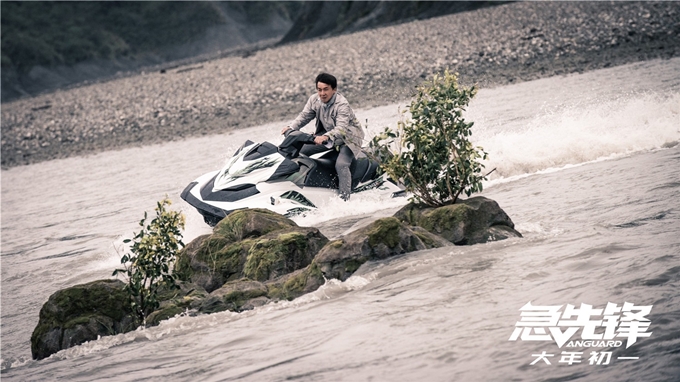 Cảnh phim Thành Long lái mô tô nước khi lên màn ảnh.