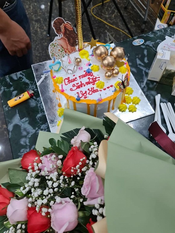 Trước đó vài ngày, chị Sao khoe ảnh đón tiệc sinh nhật ấm cúng bên chồng trẻ Hoa Cương và một số người bạn. Khác với chiếc nhẫn đắt đỏ năm ngoái, năm nay chú rể 28 chỉ tặng vợ hoa và bánh kem.
