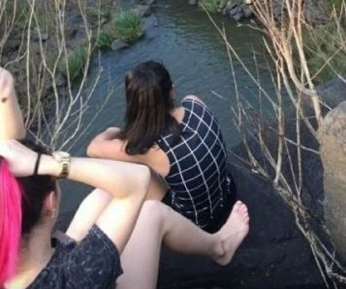 Khoảnh khắc cuối của hai cô gái ngồi gần đỉnh thác. Bức ảnh này được bạn bè của họ chụp trước khi tai nạn xảy ra. Ảnh: Sun
