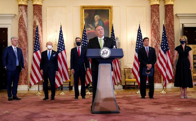 "Bất kể bạn là ai, nếu bạn vi phạm lệnh cấm vận vũ khí của LHQ nhằm vào Iran, bạn có nguy cơ bị trừng phạt" – Ngoại trưởng Pompeo khẳng định trong cuộc họp báo với Bộ trưởng Tài chính Mỹ Steven Mnuchin, Bộ trưởng Quốc phòng Mỹ Mark Esper, Bộ trưởng Thương mại Mỹ Wilbur Ross và Cố vấn An ninh Quốc gia Mỹ Robert O’Brien.