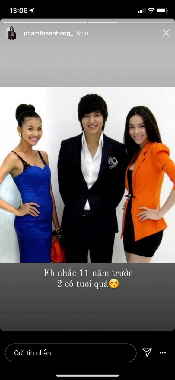 Mới đây, siêu mẫu Thanh Hằng bất ngờ chia sẻ lên trang Instagram cá nhân hình ảnh chụp cùng nữ ca sĩ Hồ Ngọc Hà cách đây 11 năm. Được biết, thời điểm này cả hai cùng tham gia một sự kiện giải trí và có cơ hội gặp gỡ nam diễn viên nổi tiếng Lee Min Ho.