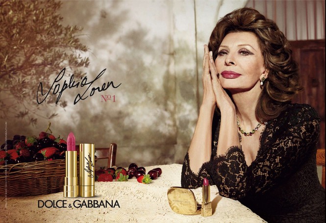Cách đây vài năm, Sophia Loren vẫn được mời làm người mẫu quảng cáo mỹ phẩm và nước hoa của Dolce & Gabbana.