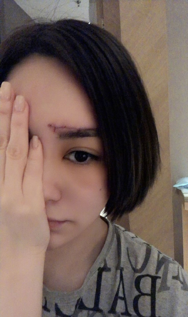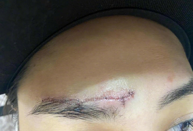 Nữ diễn viên đăng ảnh cận cảnh vết thương trên gương mặt. Có thể thấy vết sẹo này rất dài, gây đau đớn và ảnh hưởng tới nhan sắc