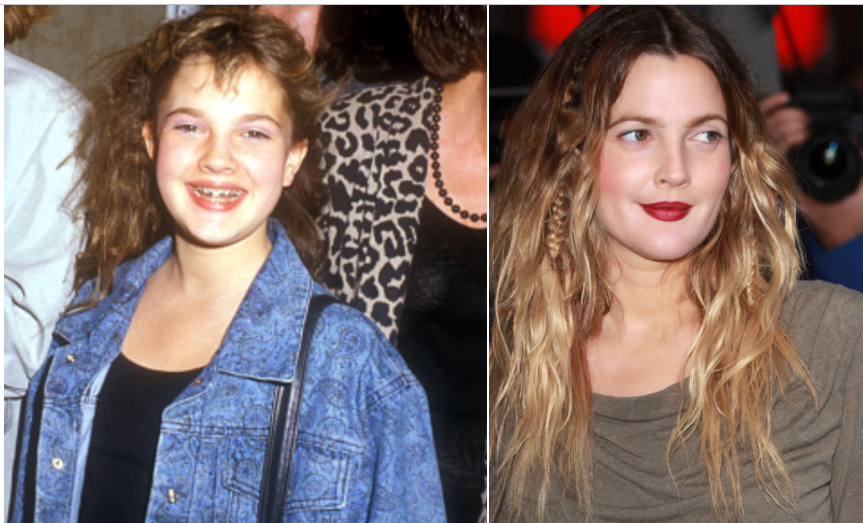 Drew Barrymore từng là diễn viên nhí được yêu thích tại kinh đô điện ảnh thế giới nhờ gương mặt khả ái và diễn xuất tự nhiên. Ở tuổi dậy thì, nữ diễn viên có nhiều sự thay đổi. Cô niềng răng và để tóc xoăn bù xù. Sau khoảng thời gian này, Barrymore hoàn toàn thay đổi, trở thành một thiếu nữ xinh đẹp, cá tính. Ảnh: Getty.