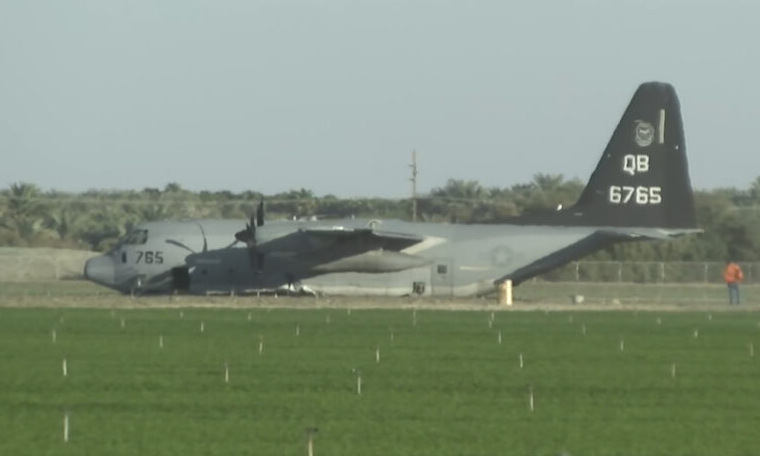 Hình ảnh từ hiện trường cho thấy chiếc KC-130J hạ cánh khẩn cấp bằng bụng xuống một cánh đồng và không có dấu hiệu bị hư hỏng nặng. Thủy quân lục chiến Mỹ cho biết đang điều tra nguyên nhân sự cố.