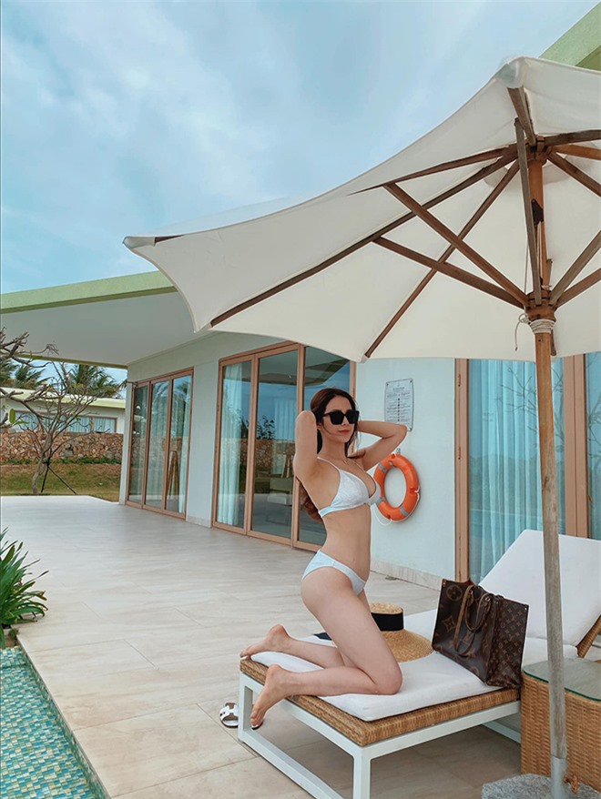 Diệp Lâm Anh khoe dáng nuột nà trên bãi biển. Cô rất tự tin khoe vóc dáng hút mắt sau gần 1 năm sinh con thứ 2.