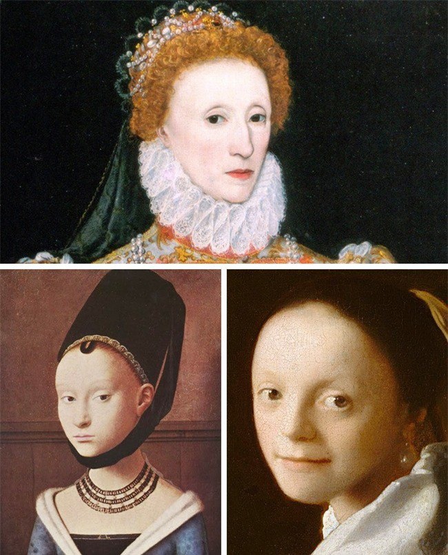 Không chỉ mốt làm da trắng bệch mà phụ nữ Âu cổ xưa còn chuộng mốt không lông mày và trán hói.