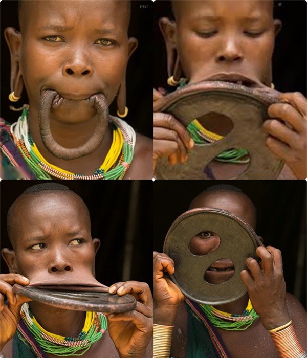 Ở thung lũng Omo River, những người phụ nữ Surma và Mursi luôn đeo lên môi những chiếc đĩa nung bằng đất sét. Các cô gái khi đến tuổi cập kê sẽ nhổ đi hai răng cửa phía dưới để kéo môi dài ra, sau đó, họ sẽ được tiến hành tạo những lỗ nhỏ để đeo những chiếc đĩa.