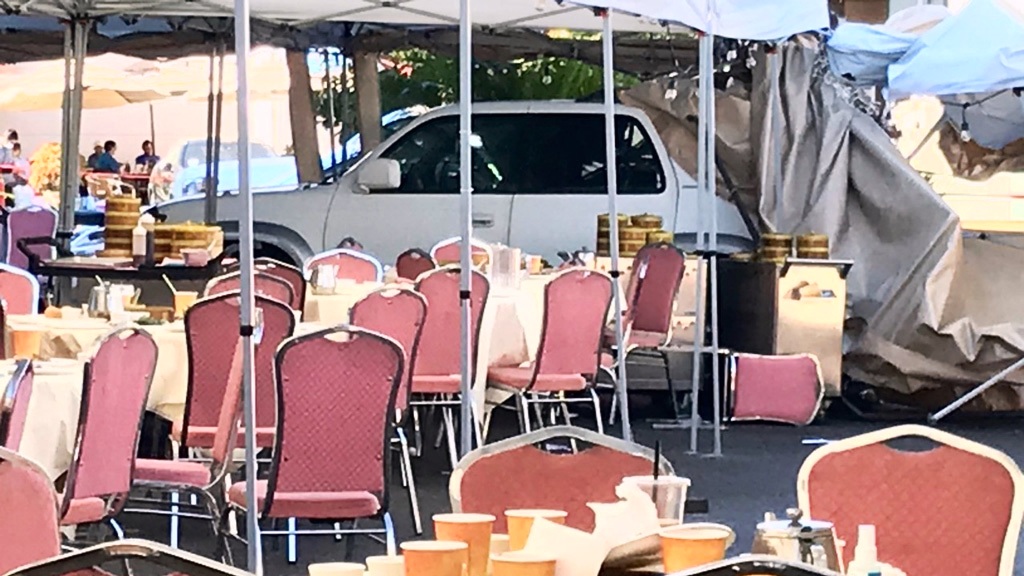 Cha tôi đã đứng xếp hàng cho chúng tôi tại tiệm dim sum và thấy những túp lều bị sập và nghe những tiếng động lớn từ chiếc xe. Ông không thấy trực tiếp tai nạn nhưng đứng rất gần chỗ ấy. Tôi nghĩ rằng chiếc Toyota SUV màu trắng thuộc đời cũ (chắc là đầu thập niên 2000?).
