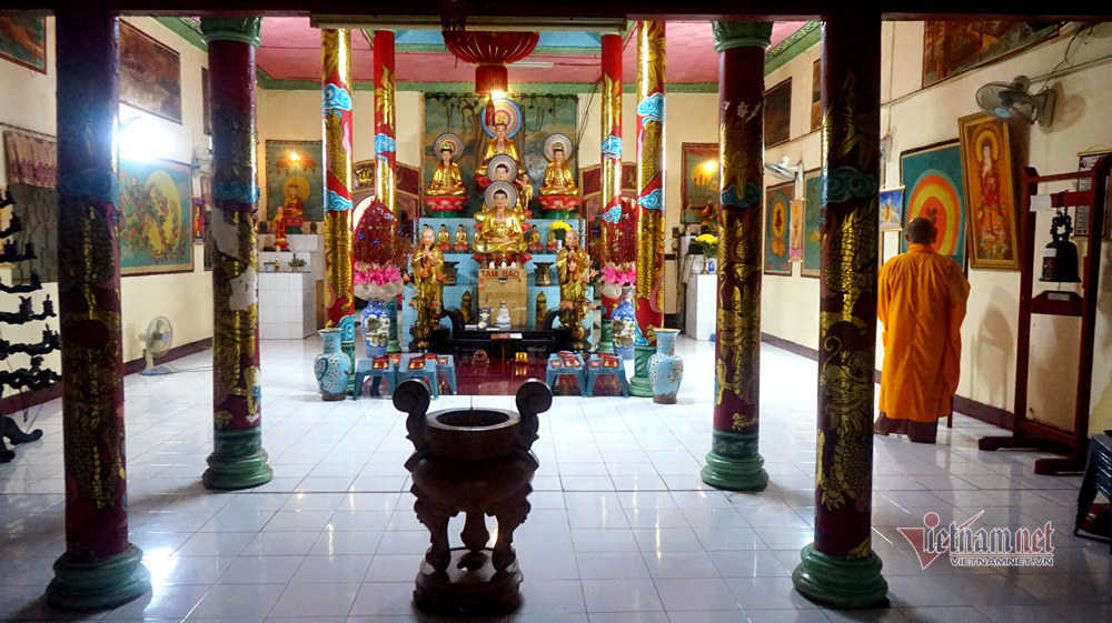 "Trước tôi làm bên Viện dưỡng lão nghệ sĩ (2007 – 2014), sau đó chùa thiếu người nên tôi qua đây làm bảo vệ, đến nay đã 6 năm. Chùa hiện có 9 người làm công quả. Theo đó, người cắt kiểng, người quét dọn, thay nhau trực chùa, giữ xe... Cứ 9h tối đóng cửa chùa, ngắt điện, tôi đi một lượt rồi về nghỉ", ông nói.