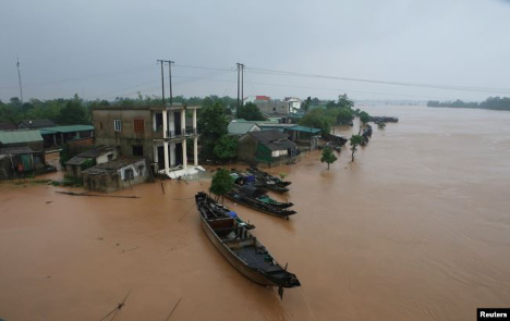 Một làng ở Quảng Trị bị ngập nước trong tuần qua (Reuters)
