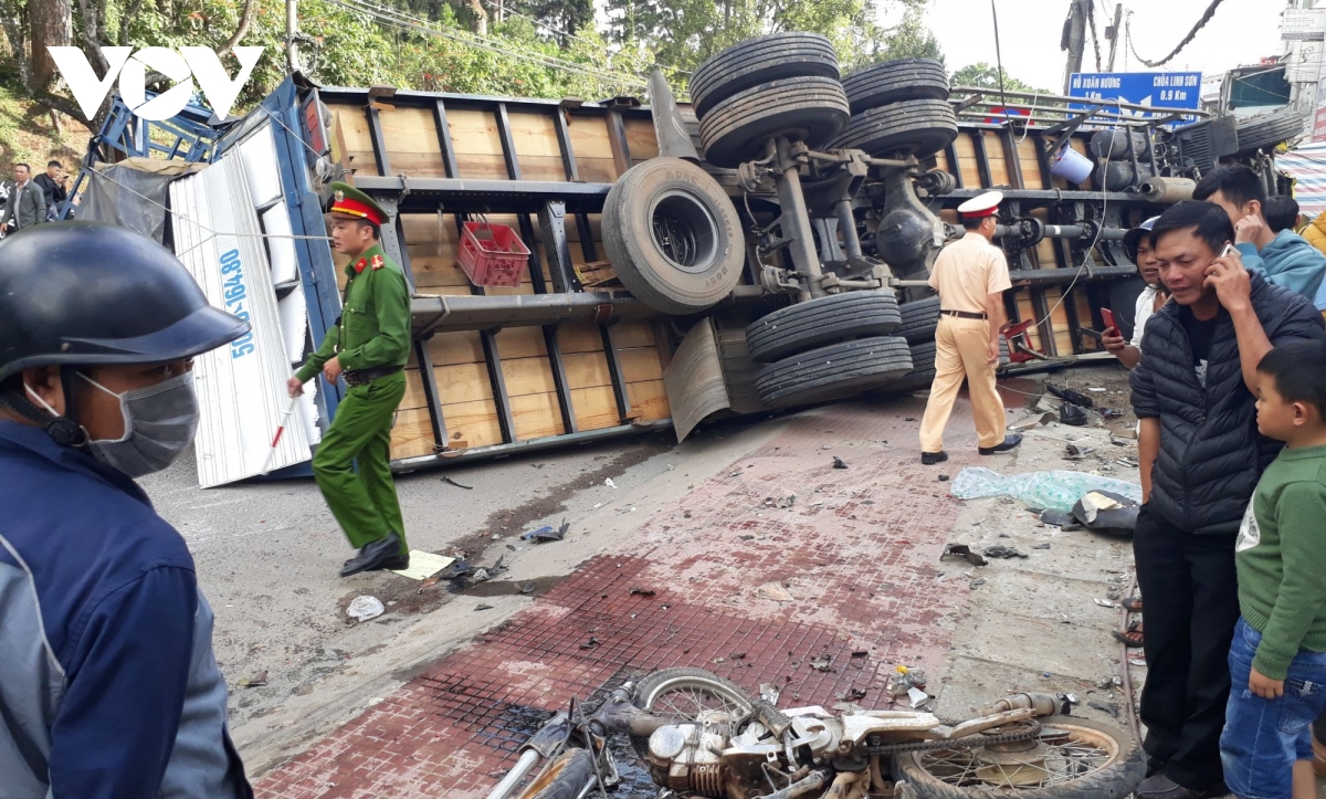 Khi xe cách vòng xoay ngả 5 Đại học Đà Lạt khoảng 150m thì lao vào lề đường bên phải và lần lượt tông gãy đổ 2 trụ điện. Trước khi bị lật nằm nghiêng, xe tải còn tiếp tục nghiền nát hơn 10 xe máy của người dân đang dừng đỗ trên lề đường.