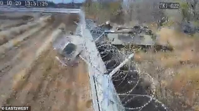 Đoạn video ghi lại vụ việc cho thấy chiếc thiết giáp được gắn súng 100 mm và pháo tự động 30 mm đã đâm đổ một phần bức tường rào dây thép gai ở sân bay Volgograd.