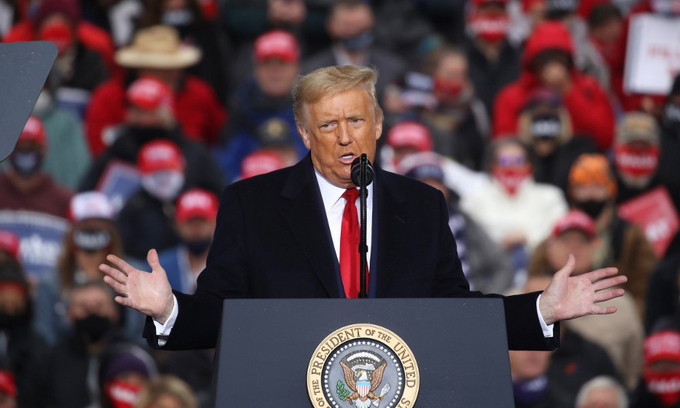Tổng thống Mỹ Donald Trump tại cuộc vận động tranh cử ở thành phố Allentown, bang Pennsylvania, hôm 26/10. Ảnh: AFP.