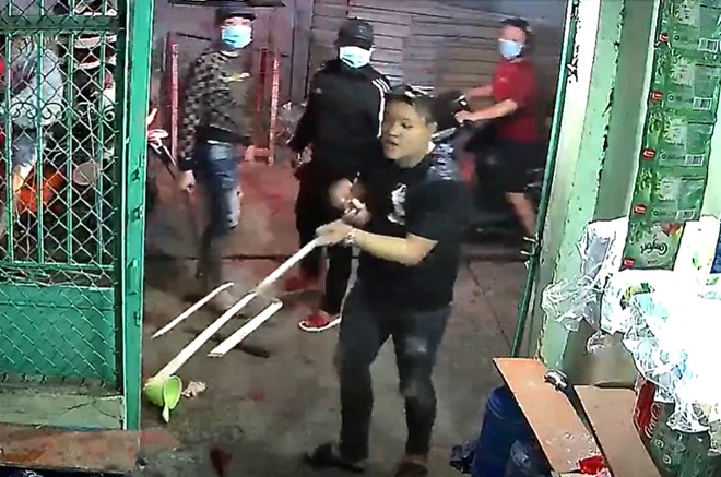 Lúc này, một nhóm hơn 10 thanh niên chạy xe máy tới, cầm ba chĩa, mã tấu lao vào tấn công anh Tuấn. Nạn nhân bỏ chạy và bị nhóm côn đồ truy sát.