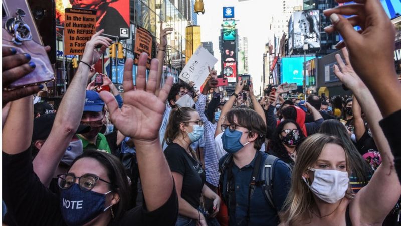 Người ủng hộ ông Joe Biden ở New York City ăn mừng hôm 07/11/2020 sau khi nghe thông báo cựu Phó Tổng thống sẽ trở thành tổng thống kế tiếp của nước Mỹ