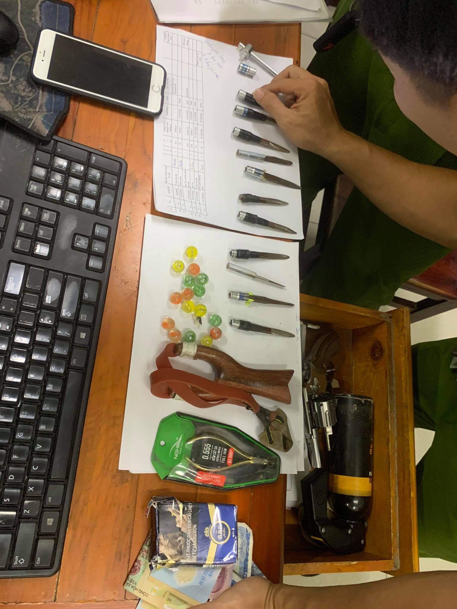 Bị truy đuổi, 2 tên trộm dùng súng bắn 3 phát về phía lực lượng công an nhưng không trúng. Tổ trinh sát nhanh chóng đuổi kịp, khống chế. Khám xét, công an thu giữ tang vật gồm: 1 khẩu súng, 6 viên đạn, 12 cây đoản, 1 bình xịt hơi cay, 1 ná thun, 16 viên bi thủy tinh...