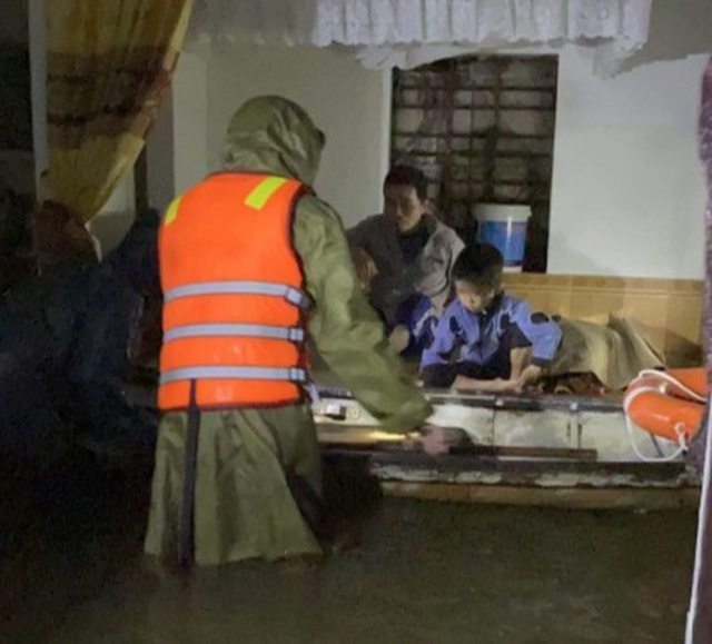 Lực lượng chức năng cứu người dân vùng lũ tại xã Bắc Trạch, huyện Bố Trạch.