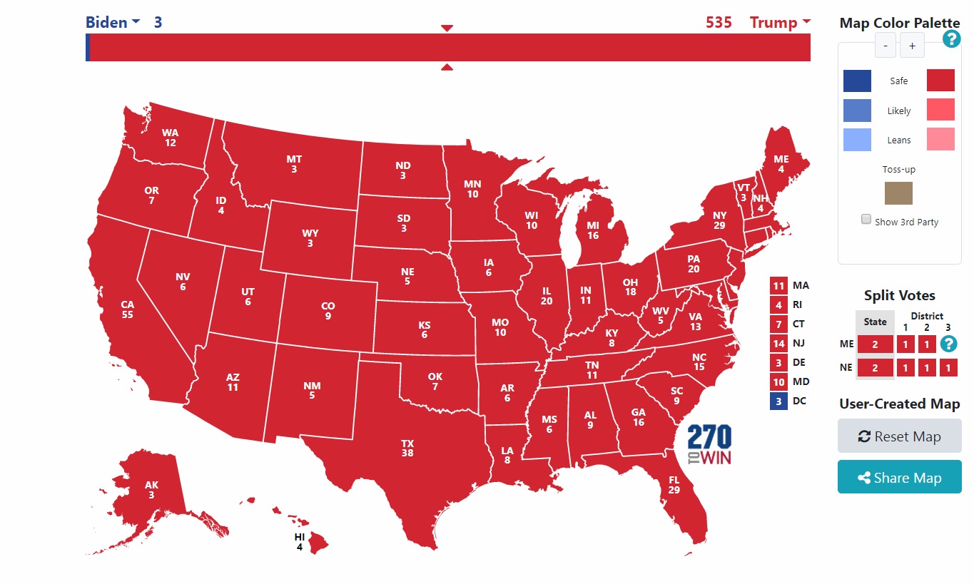 "Trump vs Biden là : 410 - 128" !