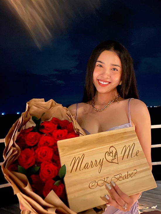 Cả hai dành cho nhau nụ hôn ngọt ngào. Đông đảo bạn bè thân thiết: hoa hậu Tiểu Vy, Ngân Anh, Lương Thuỳ Linh, á hậu Diễm Trang... gửi lời chúc mừng cặp đôi.