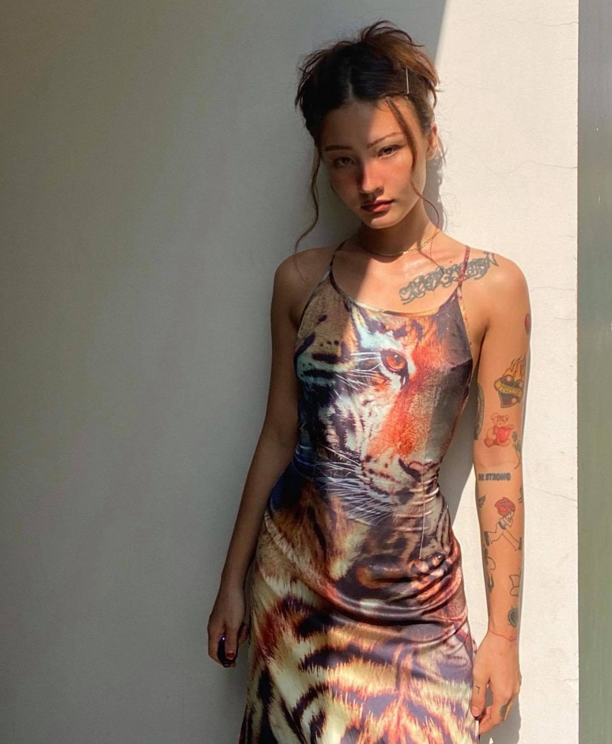 đến chiếc đầm da beo ôm sát người xẻ tà đến nghẹt thở...