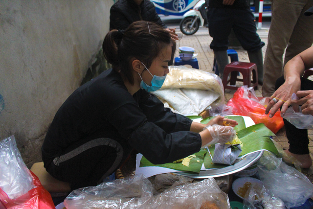 Dù mới chính thức ngồi bán 1 mình được 8 năm, nhưng chị Mây đã có gần chục năm phụ mẹ bán xôi nên thành thục các công đoạn, biết cách sắp xếp làm sao cùng một lúc có thể gói được nhiều xôi nhất và quan trọng là phải tập trung cao độ để nhớ yêu cầu của khách.