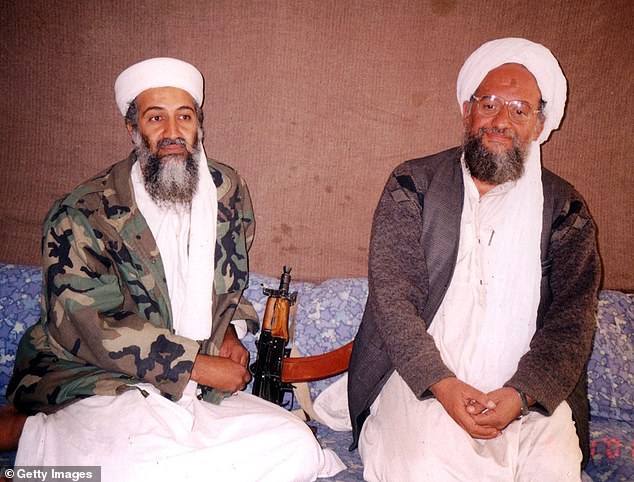 Zawahiri (phải) trong bức ảnh chụp cùng trùm khủng bố Osama bin Laden.