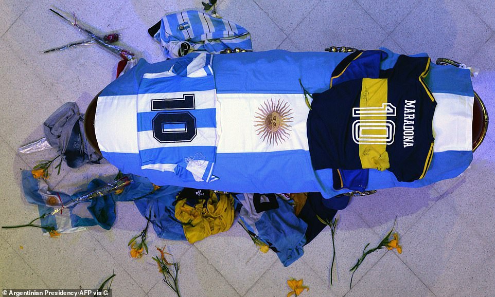 Clarin và Ole ghi nhận có rất đông cổ động viên tới Casa Rosada - Dinh tổng thống Argentina - ở thủ đô Buenos Aires để viếng đám tang Maradona ngày 26/11.
