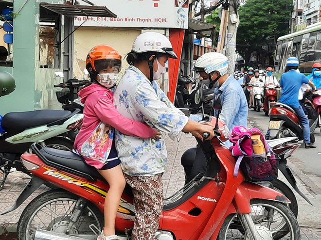 Sau khi ca nhiễm mới Covid-19 ở TP.HCM được công bố. Người dân ở TP.HCM lo tìm cách phòng tránh dịch. Rất nhiều người bịt khẩu trang kín mít, dặn con em phòng tránh dịch.