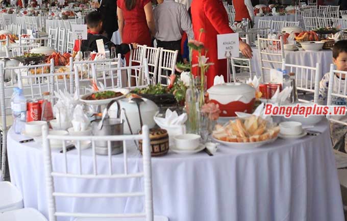 Những hình ảnh bên trong lễ đường dần được hé lộ. Gây chú ý không hề kém cô dâu - chú rể là thực đơn gia đình Công Phượng chuẩn bị mời khách.