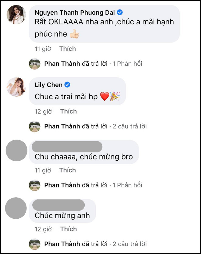 Dường như sau khi thành chồng người ta, Phan Thành chịu khó xuất hiện trên MXH hơn. Thiếu gia không chỉ đăng ảnh đám hỏi mà còn thay avatar từ Facebook đến Instagram. Ngoài ra thiếu gia cũng không quản bận rộn, lần lượt cảm ơn lời chúc mừng của từng người một phía dưới những bài đăng của mình.