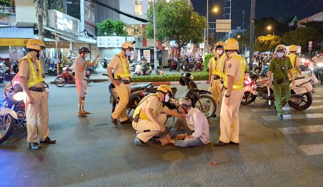 Trong lúc tuần tra chống đua xe, các chiến sỹ Đội CSGT trật tự Công an quận 11 (TPHCM) đã phải đưa một người đàn ông say xỉn gây tai nạn và bị thương nặng vào bệnh viện cấp cứu.