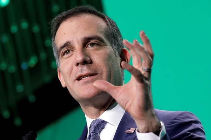Thị trưởng Los Angeles Eric Garcetti phát biểu tại Hội nghị Thị trưởng Mỹ ở thủ đô Washington hôm 24/1/2019. Ảnh: Reuters.