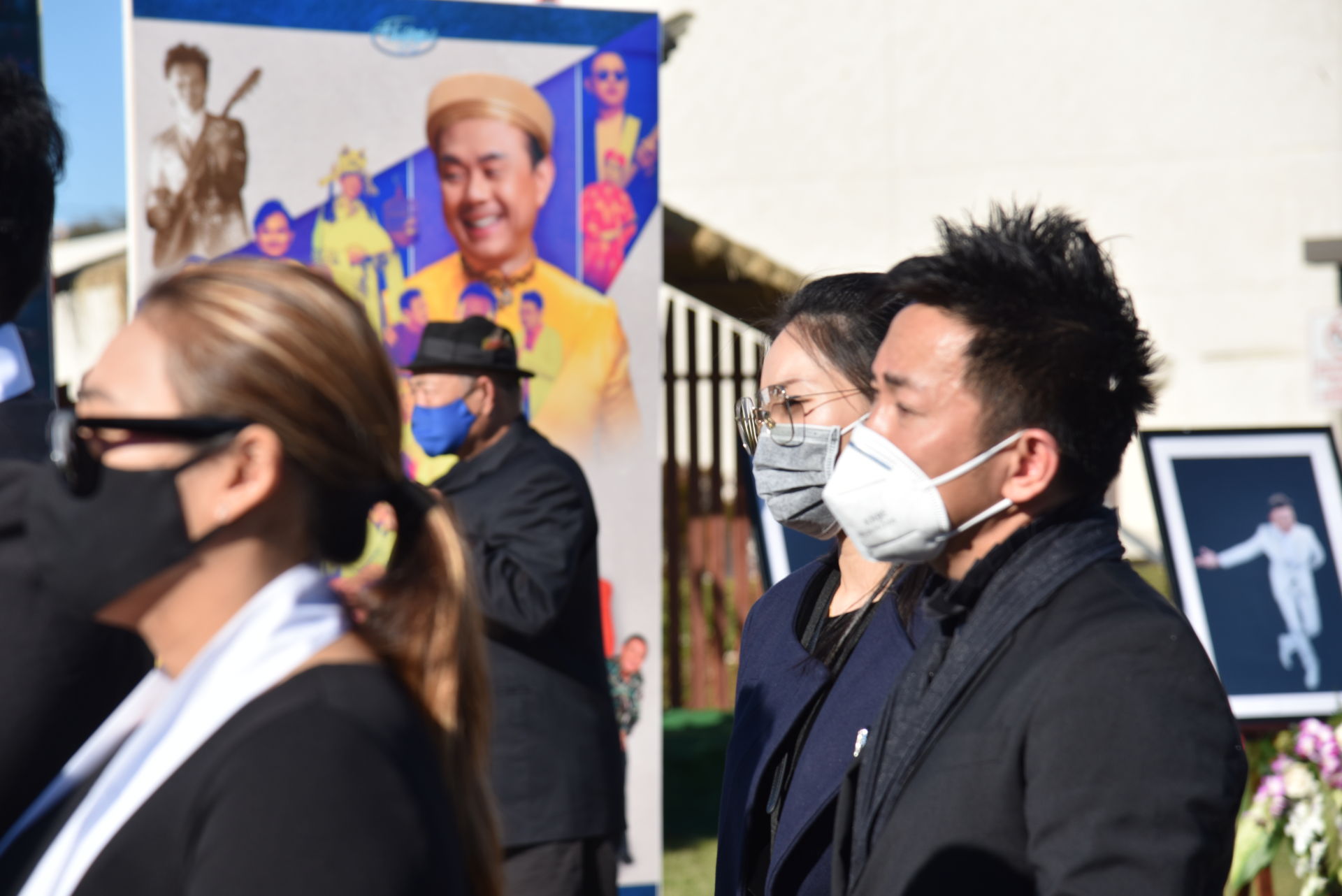 Ông Tô Văn Lai (giữa) và bà Tô Ngọc Thủy, giám đố trung tâm Thúy Nga Paris, đến dự tang lễ. (Hình: Văn Lan/Người Việt)