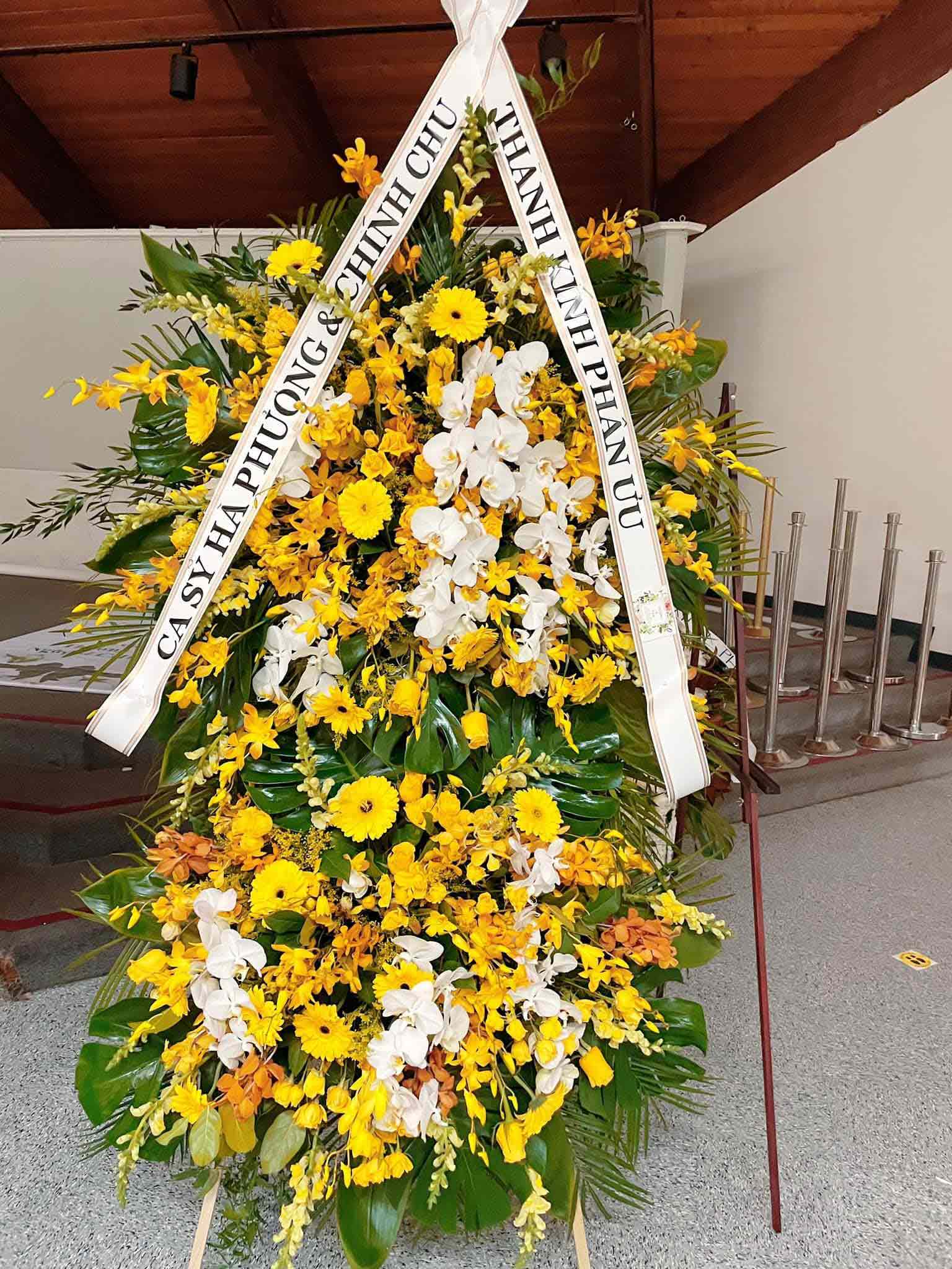 Vòng hoa được vợ chồng ca sĩ Hà Phương gửi tới viếng cố nghệ sĩ Chí Tài
