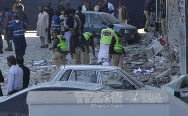 Lực lượng cứu hộ Pakistan đã phải làm việc cả đêm qua để đưa những người bị thương và các thi thể ra khỏi các đống đổ nát.