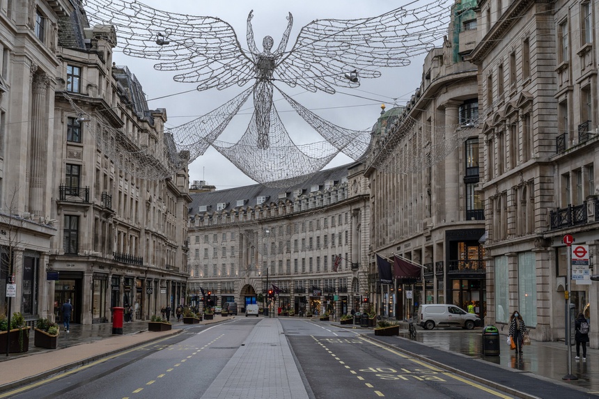 Bất chấp diễn biến phức tạp của đại dịch, người dân Anh vẫn được phép ra đường mua sắm cho dịp Giáng sinh. Ảnh: New York Times.