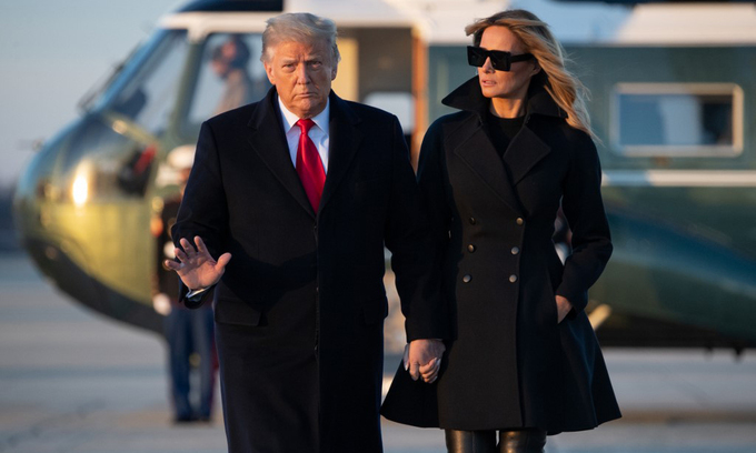 Tổng thống Mỹ Donald Trump và phu nhân Melania tại sân bay căn cứ không quân Andrews ở bang Maryland hôm 23/12. Ảnh: AFP.