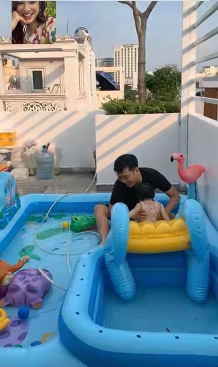 Trường Giang và con gái chơi vui vẻ trên sân thượng khi vắng mẹ - Ảnh: FB