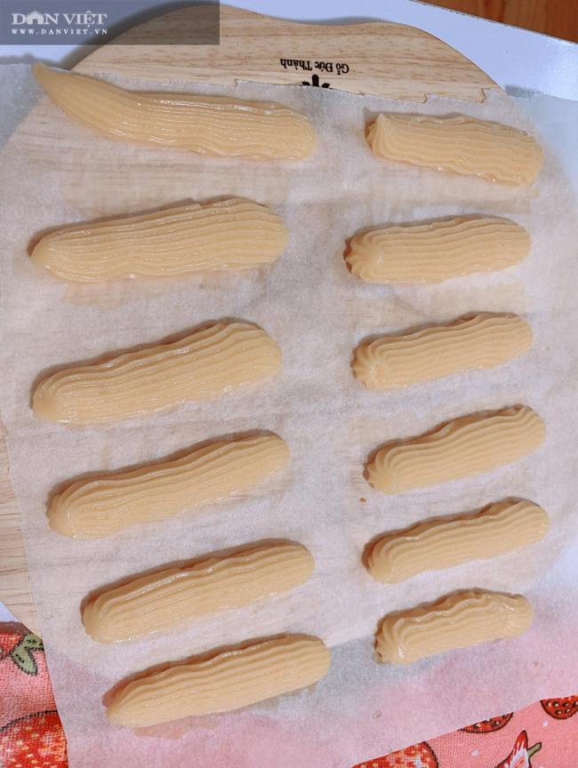 - Cho bột vào túi bắt kem và có sẵn chui bánh. Bắt bánh su tṛn hoặc dài tuỳ theo các bạn.