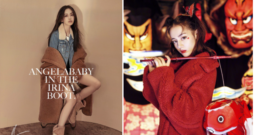 Thực tế, cặp diễn viên Hoa ngữ thường xuyên mặc đồ giống nhau. Năm 2018, cả hai cùng sử dụng mẫu áo lông cao cấp của thương hiệu Max Mara. Angelababy được khen sáng tạo hơn vì mix&match với jacket jeans và giày boots khoe chân dài. Ảnh: Max Mara, Weibo.