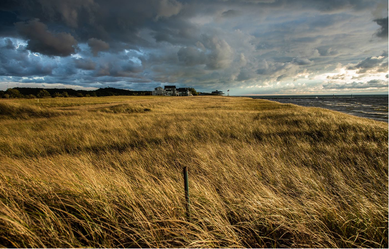 Bên bờ sông Kalamazoo, chỉ còn những cồn cát và cỏ dại.