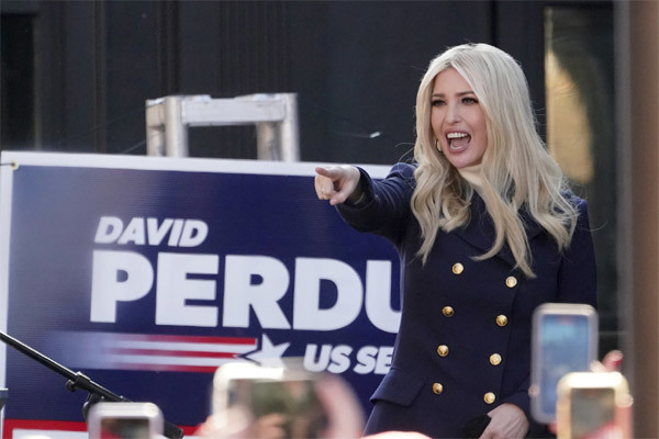 Ái nữ của Tổng thống Mỹ công khai kêu gọi ủng hộ 2 thượng nghị sĩ Cộng hòa trong cuộc bầu cử nước rút ở bang Georgia, sự kiện dự kiến sẽ quyết định đảng kiểm soát Thượng viện nhiệm kỳ mới vào ngày 5/1 năm nay.