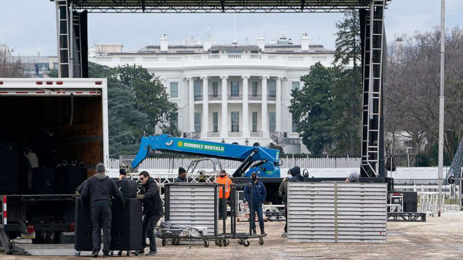Sân khấu đang được dựng tại công viên Ellipse. Ảnh: AP