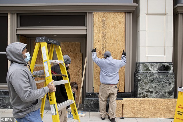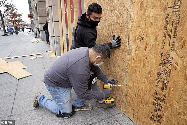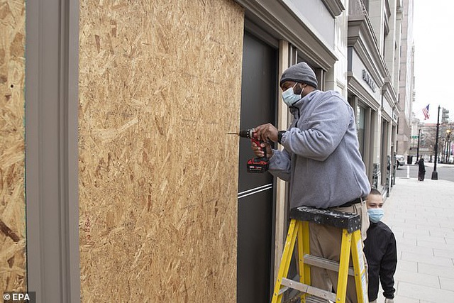 Lo ngại nguy cơ xảy ra bạo loạn, nhiều cửa hàng ở Washington DC từ hôm 5/1 đã bắt đầu đóng ván gỗ lên cửa ra vào và cửa sổ để ngăn bị phá hoại và cướp bóc.