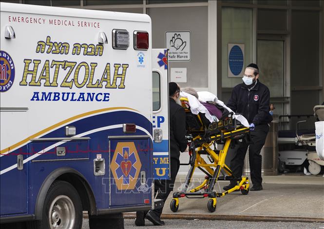 Nhân viên y tế chuyển bệnh nhân COVID-19 tới bệnh viện ở New York, Mỹ, ngày 1/1/2021. Ảnh: THX/TTXVN